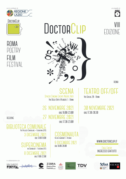 DoctorClip – Roma Poetry Film Festival, realizzato con il contributo della Regione Lazio, è il primo festival italiano di videopoesia, esplorazione di territori inconsueti della parola e delle arti audiovisive.
