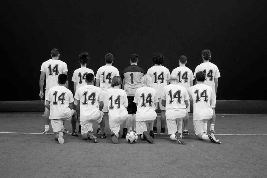 Il titolo “non mi importa (il calcio)”, ispirato dalle parole di una ragazza della comunità, suggerisce come il gioco non sia fine a se stesso, ma una pratica di inclusione e integrazione sociale. La squadra è composta, infatti, da persone con disturbi psichiatrici insieme a operatrici e operatori, sostenitrici e sostenitori. Tutti vestono il numero 14 di Johan Cruijff, leggendario giocatore dell’Ajax, tra gli inventori più emblematici del calcio totale. Le divise, tutte identiche, simboleggiano non solo una forma di stare sul campo e uno stile di gioco, ma un pensiero più ampio, critico rispetto alle identità rigide, e che confida sulla possibilità di assumere e cambiare ruolo nel campo e nella società.
