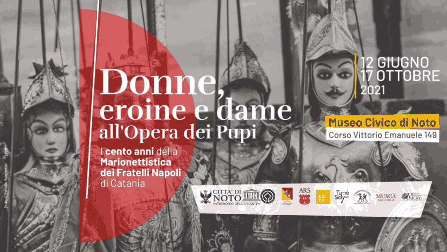 In occasione del centenario della nascita della Marionettistica dei Fratelli Napoli di Catania, fondata nel 1921 da don Gaetano Napoli, Sikarte inaugura, presso il Museo Civico di Noto, la mostra Donne, eroine e dame all’Opera dei Pupi. I cento anni della Marionettistica dei Fratelli Napoli di Catania, a cura di Alessandro Napoli.