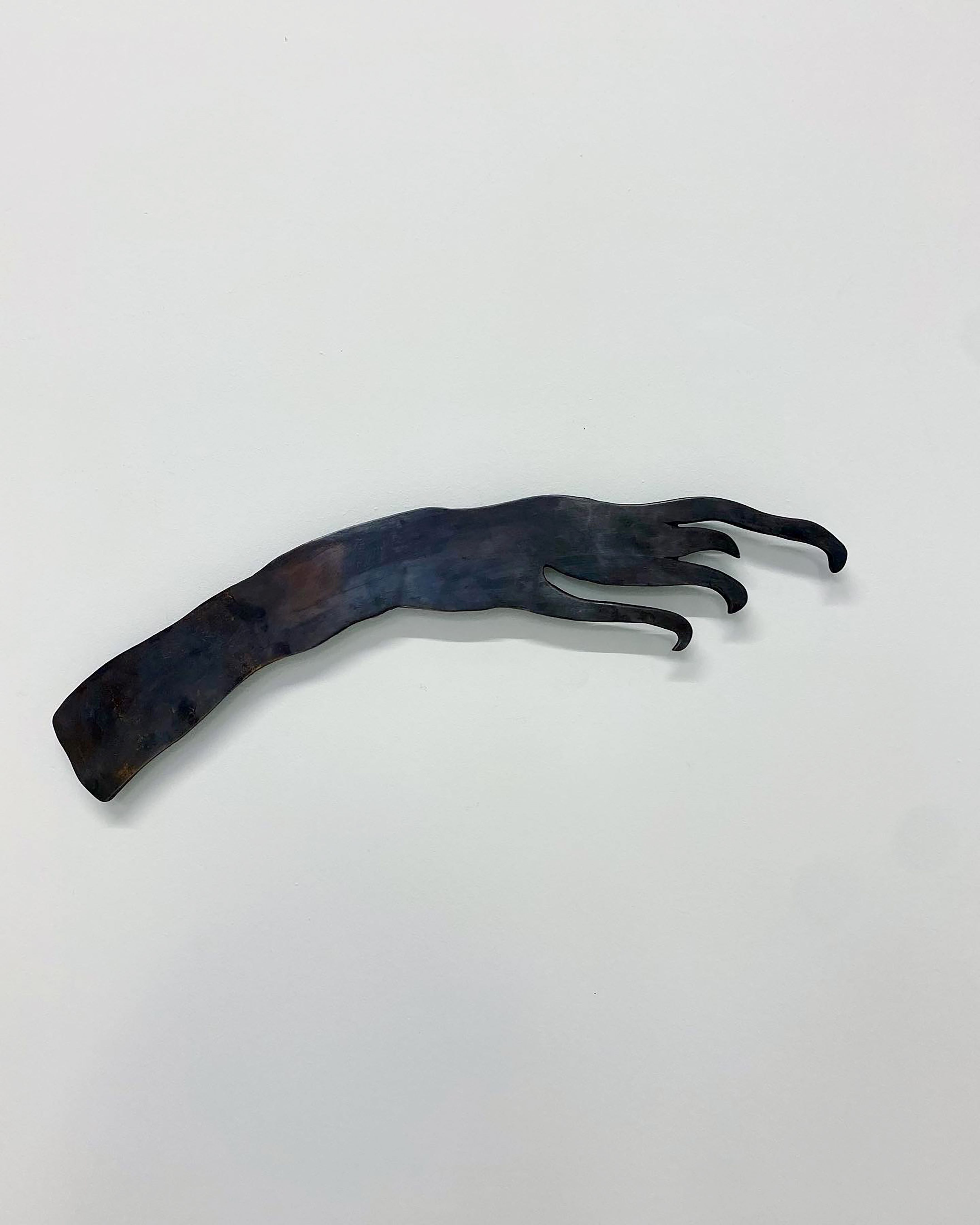 Al piano superiore del nuovo spazio espositivo di Artopia le mani in bronzo di Adélaïde Feriot (Sur la crête des vagues, 2022) abitano il muro in un gesto spettrale e guardano le centinaia di piccole sculture astratte realizzate con fili metallici colorati (THINGS, 2023), progettate da Seulgi Lee per essere manipolate e tenute in mano.