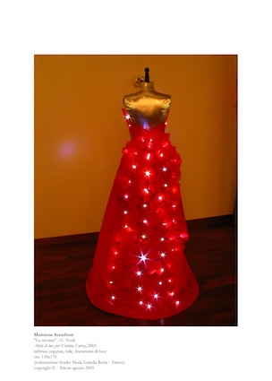 Dalla metà degli anni Novanta lavora infatti sul tema della luce, nel cui ambito ha ideato scenografie d’avanguardia realizzate attraverso raggi laser, allestimenti e scenografie di luce per concerti, spettacoli teatrali e mostre d’arte ed eventi multimediali e di luce per spazi urbani e musei. Ha ideato ed esposto abiti-scultura e di luce, bozzetti per scene e costumi e installazioni luminose per spettacoli teatrali, concerti e gallerie d’arte in Italia e all’estero. Attualmente un suo abito di luce dedicato a Maria Teresa d’Austria è esposto al Deutschvilla Museum di Strobl nel Salisburghese su invito del direttore dell’istituzione Ferdinand Götz.