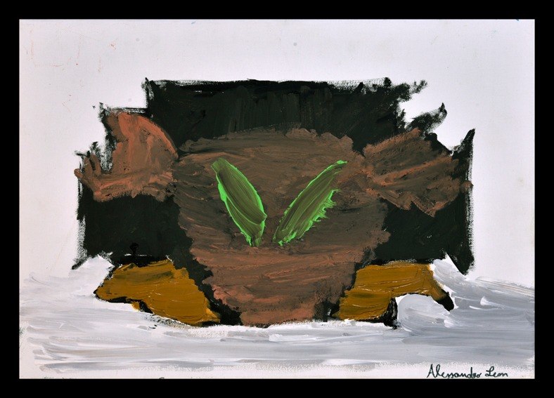 È ovvio che il vissuto dipinto su tela da Alessandro Leon è un tempo trascorso e non ancora oggetto di consapevolezza radicata in valori e credenze, ma non è detto che quel frammento vissuto in quel momento, possa poi cambiare ed assumere caratteristiche totalmente diverse così come è successo per uno spiritello di fuoco, autentico e sincero, che protegge con amore il suo ambiente.