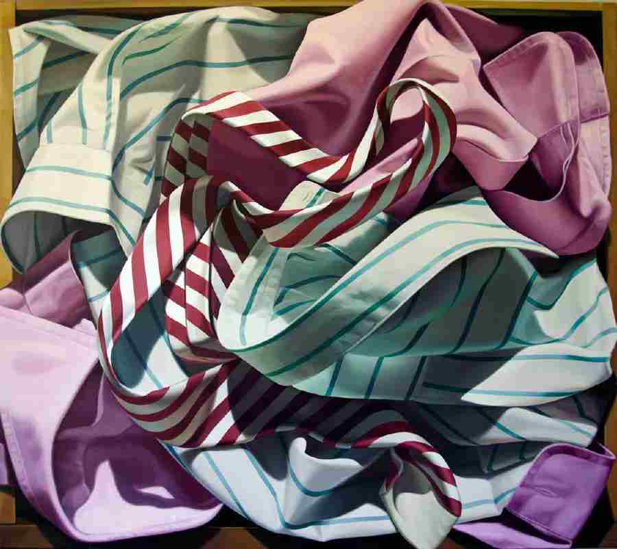ALBERTO MAGNANI nasce nel 1945 ad Arborea (Oristano). Si diploma al Liceo Artistico di Brera a Milano nel 1965 e nel 1974 visita per la prima volta gli Stati Uniti. A partire dal 1970 realizza numerose mostre personali e collettive in Italia, Europa e Stati Uniti e contribuisce a progetti di grafica editoriale. Negli anni Ottanta alterna lunghe permanenze di lavoro a New York con frequenti soste nella sua casa studio di Induno Olona. Le sue opere sono fortemente condizionate dalle sue esperienze oltreoceano e soprattutto dalla Pop Art americana e dall’Iperrealismo. Attraverso la resa fotografica ma estremamente caratterizzante cerca di restituire vitalità e personalità agli oggetti. La sua produzione vede coinvolti abiti maschili, cravatte dai colori sgargianti, serie di camicie eleganti ma anche cornici, maschere africane e oggetti umili della quotidianità come sacchetti di carta. Vive e lavora a Varese.