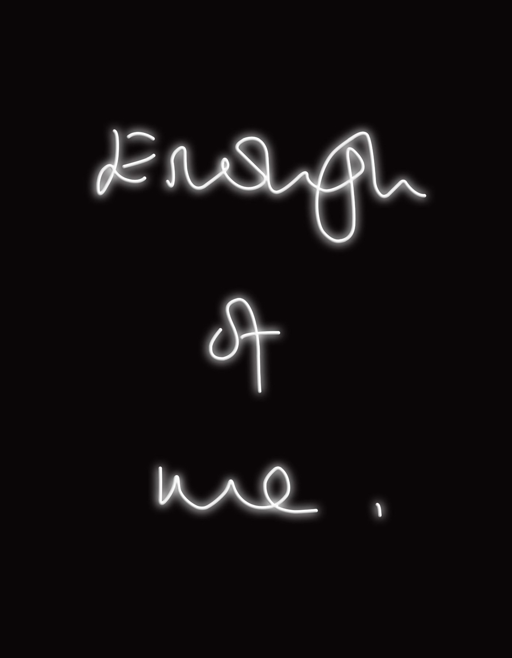 A queste si affiancano due nuove scritte al neon, Enough of me (2026) e I promise/ after this/ honestly/I shall do better, I will (2026), dal tratto preciso e ipnotico, in cui il linguaggio si manifesta come segno luminoso e processo tecnico, attraversato dalla presenza fisica del gas e dalla sua trasformazione chimica. Sono inoltre presenti testi ricamati su canovacci da cucina, dove la parola prende forma attraverso la manualità e il gesto ripetuto del cucire. L’intervento, che avvenga a mano o a macchina, interrompe la trama regolare dell’oggetto domestico, lo disordina e lo trasforma, affidandogli un nuovo messaggio da portare. In questo dialogo tra tecnica e dimensione manuale, tra luce e materiali organici, il gesto artistico è il luogo in cui controllo e perdita di controllo si confrontano.