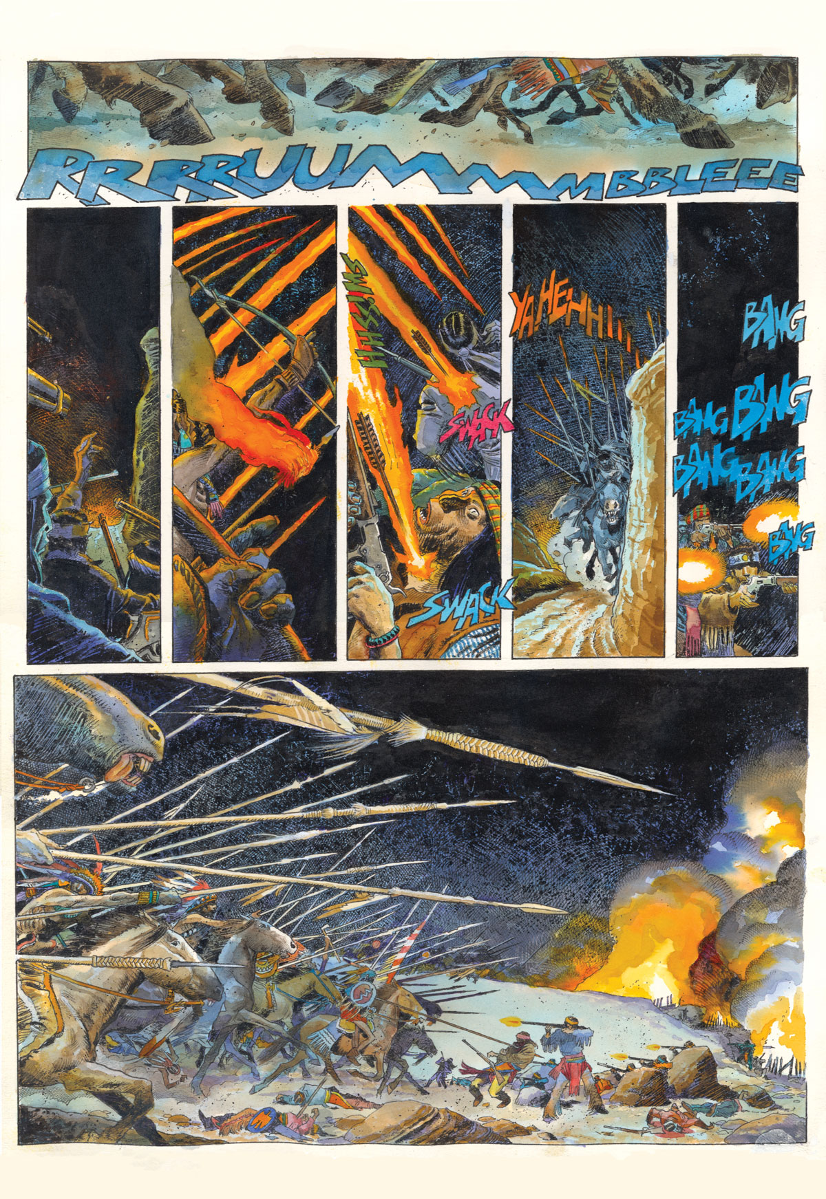 Sono, perlopiù, tavole di grande formato dove il maestro plasma il suo segno visionario e magico. Una serie di opere che spaziano dalle illustrazioni storiche alle tavole di diversi suoi capolavori fra cui Tex Willer e Alvar Mayor.