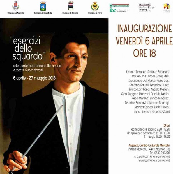 “ESERCIZI DELLO SGUARDO” non vuole essere altro che questo: la presa in considerazione di un rimosso e un contributo alla registrazione di una vicenda figurativa che, anche se oggi apertamente inattuale, riveste un potenziale e particolare significato di opposizione alla liquida vischiosità dell'”accademia del contemporaneo”. Infine, si sono imposte la volontà di dare agli artisti una possibilità di presentazione personale (raccogliendo, così facendo, un raro documento sincronico) e la scelta di articolare la mostra in quattro sedi espositive - Argenta, Brisighella, Cesena e Forlì – che corrisponde a una aperta sollecitazione: scoprire, viaggiando, artisti, luoghi dell'arte e un territorio (fisico e culturale) di riferimento. “Esercizi dello sguardo”, anche per il pubblico.