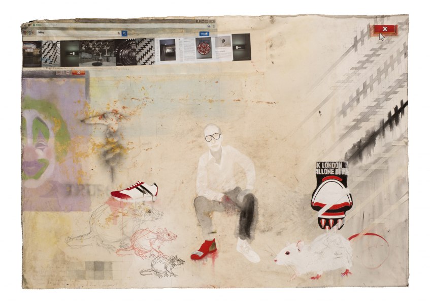 Frammenti e riferimenti tratti da Hieronymus Bosch, Picasso, Carsten Holler, Matthew Barney, Michelangelo Buonarroti, Francisco Goya, Maurizio Cattelan, Piero Manzoni, Théodore Géricault, e altri protagonisti della storia dell’arte si incrociano con maschere antiche e contemporanee, griffe della moda, personaggi politici, temi di stretta attualità: memoria, cronaca, storia, sguardi sul futuro si uniscono creando superfici altamente sensibili di immagini con una fitta interrelazione di simboli e significati accompagnati da una costante cura della qualità dell’immagine che è cifra stilistica sempre riconoscibile dell’autore.