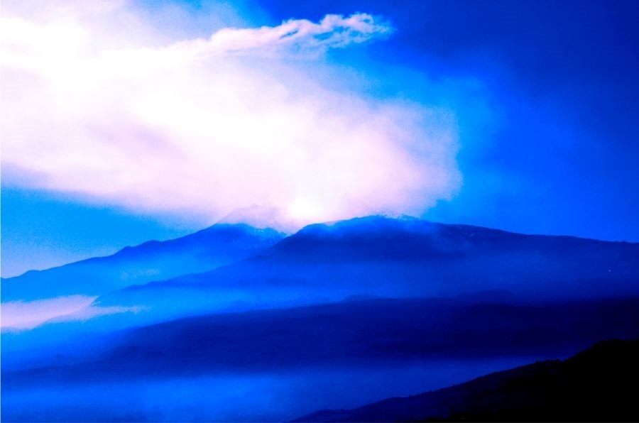 La mostra fotografica presenta 15 immagini che interpretano in modo inconsueto e originale una delle più note icone del panorama siciliano. Tra i vulcani attivi del nostro pianeta l’Etna fa parte del Patrimonio dell’Unesco dal 2013 ed è il protagonista di spettacolari paesaggi immortalati da artisti e poeti di tutto il mondo. “Idda a Muntagna”, per chi abita alle falde di questo vulcano, è sicuramente qualcosa di più di un bene paesaggistico, è la mitica montagna, femmina, madre feconda, musa ispiratrice. Per Salvatore Tudisco, autore degli scatti in mostra, rappresenta il privilegio di avere un contatto diretto con le origini del mondo con misteri ancestrali che suscitano riflessioni profonde, che arrivano fino al significato stesso dell’esistenza umana e della natura delle cose. È proprio il frutto di queste considerazioni che genera un caleidoscopio di emozioni intense, vivide, brulicanti di energia nativa. Nell’immaginario collettivo il vulcano ricorda lava, calore rovente, magma incandescente, lapilli di nero fumo, per un uomo nato a Taormina il vulcano è luminescenza, divinità, splendore aureo, azzurro cielo. Quest’ultima visione non è in contrasto con la prima ma ne è semplicemente la conseguenza naturale, è andare oltre l’apparenza esteriore delle cose per coglierne l’essenza. La rugosa consistenza della crosta lavica quindi lascia spazio a deliri evanescenti, a improvvisi palpiti, lapilli di puro colore primario, steso in campiture sempre più rarefatte. La classica vista fotografica che faceva incorniciare l’Etna nel famoso Teatro di Taormina si trasforma allora in un non-luogo astratto, in una rapsodia emozionale di colori che ci fa perdere le coordinate reali e ci trasporta sulle note blues dell’inconsistenza e del dubbio fino ad arrivare all’apoteosi concreta del magma originario.