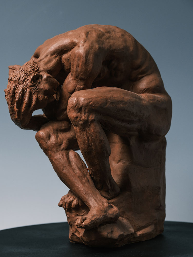 Greco affronta la disperazione umana davanti al baratro del nulla. Il lavoro dell’artista di Padova riprende i temi della morte e della dannazione eterna che avevano tormentato Auguste Rodin (Parigi, 1840 - Meudon, 1917) nel realizzare la Porta dell’Inferno, il testamento di una vita. Lo scultore veneto recupera dal suo ideale maestro la meditazione plastica ma il ritmo delle sue figure è del tutto contemporaneo; nei volti sorpresi in pensieri profondi e disorientanti, nei corpi rannicchiati dove muscoli e tendini e sangue si comprimono alla ricerca di una calma irraggiungibile, nelle zampe di cavalli scalcianti dentro il vuoto si sente, forte, la necessità della fuga. Il fatto nuovo, rispetto alla crisi esistenziale scoppiata nei primi vent’anni del Novecento, è che l’uomo di oggi non è più neppure in rivolta, è solo spaventato e Greco, mentre riapre dopo Sartre e Camus i temi del nichilismo, dice bene la nostra deriva.