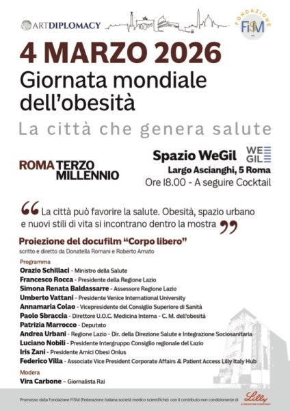 Il 4 marzo questa visione si confronta con il tema della salute pubblica. L’obesità sarà affrontata come malattia cronica complessa, che incide sulla qualità della vita e aumenta il rischio di patologie cardiovascolari e metaboliche. Non si tratta di una questione individuale ma di una sfida collettiva che coinvolge ambiente, organizzazione sociale e scelte politiche.