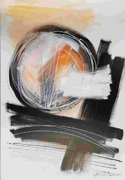 E conclude presentando l'opera di Antonio Del Donno: “L'attualità è descritta dai simboli e dalle parole dipinti nelle opere di Del Donno che segnano sulle tele, attraverso un gesto pittorico distintivo e forte, profili di umane sensibilità, entusiasmi, fragili certezze, lunghe attese e profonda fiducia nell'oltre, qualunque sia il suo nome. Quello che conta è nelle piccole cose, nella verità degli accadimenti, nella fiducia nel futuro. Quello che davvero ‘brilla’ è l’arancio che parla di fuoco della ricerca, sono i blu divini; i neri che tracciano segni come cardini per eroi moderni divisi tra sacro e profano, rivoluzioni interiori e battaglie terrene: rosso e ocra. Del Donno ci racconta la vita degli ‘angeli con una sola ala”.
