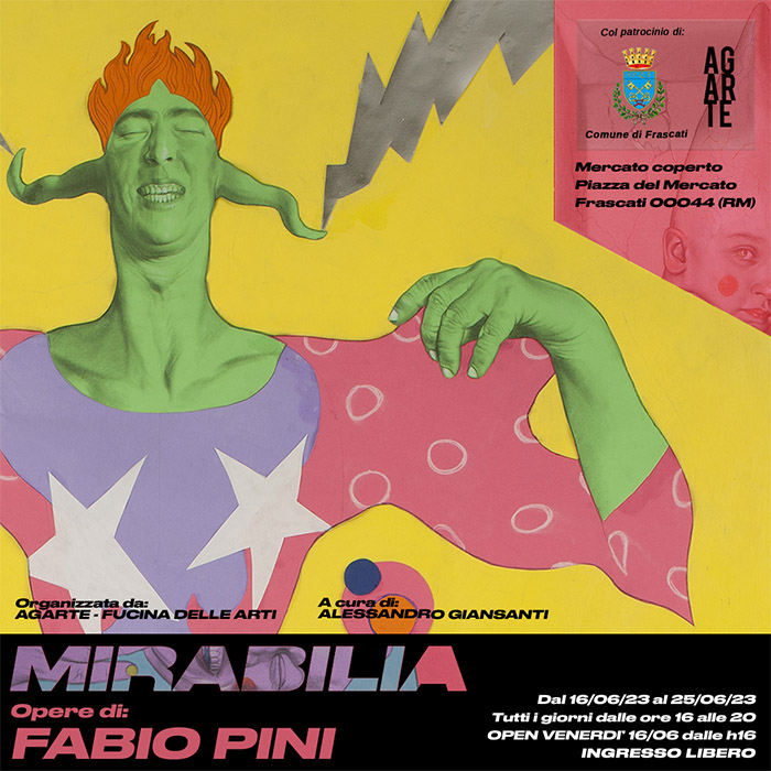 Esposizione personale di arte contemporanea dell’artista emergente capitolino Fabio Pini all’interno della location comunale del Mercato coperto in Piazza del Mercato di Frascati (Roma) a cura della Galleria d’Arte ed Associazione Culturale “Agarte – Fucina delle Arti” con testi critici di Alessandro Giansanti.