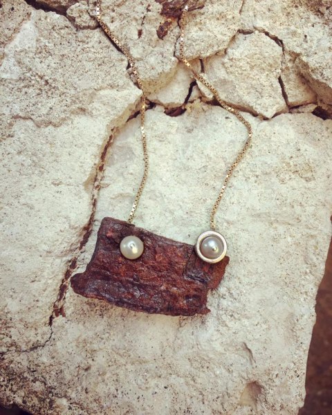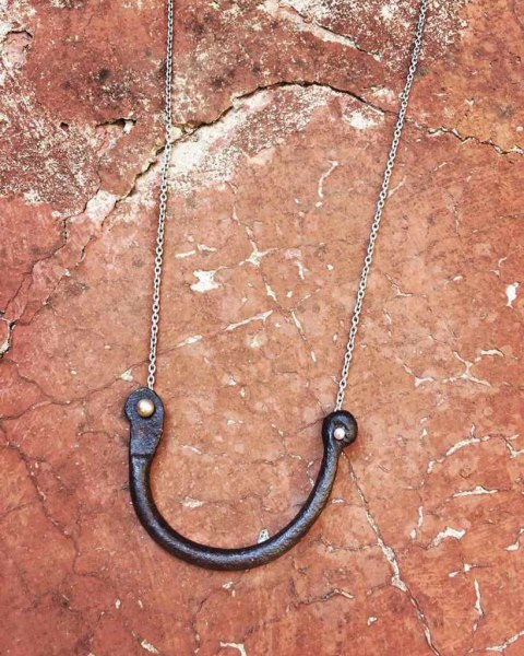 Chiara Fenicia realizza le sue collane assemblando pezzi di ferro spesso trovati per terra, nelle discariche o smontando antiche serrature e catene, con elementi preziosi (oro, argento, pietre). La composizione è finalizzata a dare nuova vita e bellezza a oggetti che altrimenti sarebbero dimenticati e col tempo sepolti.