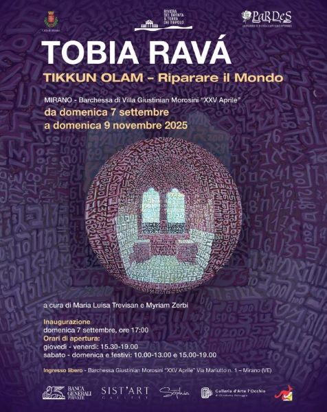 E' l'ultima settimana per visitare la mostra personale di Tobia Ravà Tikkun Olam - riparare il mondo, a cura di Maria Luisa Trevisan e Myriam Zerbi, che ha avuto grande riscontro di critica e pubblico. Tikkun Olam è un’espressione della cultura ebraica che si collega a un’idea fondamentale: alla responsabilità, propria degli esseri umani, di migliorare il mondo, attraverso azioni di giustizia, di pace, di bellezza, di confronto.