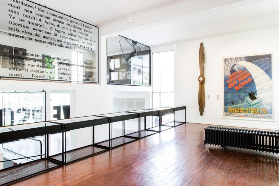 L’apertura della mostra UNIVERSO FUTURISTA è stata anche l’occasione per presentare la sede della Fondazione all’interno di un edificio di grande pregio progettato e realizzato da Achille e Pier Giacomo Castiglioni nel 1960 per Dino Gavina. Il restauro filologico degli ambienti è stato curato da Elisabetta Terragni - Studio Terragni Architetti, Como, New York - nel pieno rispetto delle scelte originali cercando di ridurre al minimo i necessari interventi per l’adeguamento degli spazi alla nuova vocazione pubblica. Originale è rimasto il pavimento in pianelle di cotto come pure le quattro scenografiche scalinate, visibili da ogni punto dello spazio e tutte diverse tra loro, che mettono in comunicazione altrettanti livelli dell’edificio e contribuiscono a quella sensazione di continuità spaziale e leggerezza che si respira mentre si cammina nelle sale.
