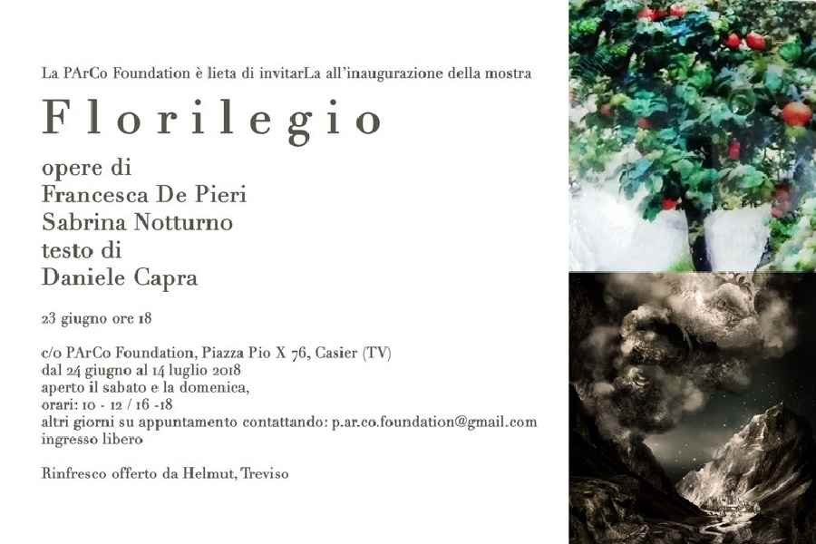 PArCo Foundation è lieta di presentare al pubblico Florilegio, bipersonale con opere di Francesca De Pieri e Sabrina Notturno. La mostra propone una selezione di oltre una trentina di lavori, scelti con un criterio di significatività rispetto alla recente produzione delle artiste. Florilegio compie una ricognizione a partire dalla complessa sovrapposizione di accadimenti visivi che gli occhi registrano e di immagini che si creano nella mente con accostamenti dal gusto surreale. In particolare la mostra evidenzia come la stratificazione di immagini – sia grazie all’impiego della registrazione fotografica su supporto in resina, che per giustapposizione di visioni realizzate attraverso l’impiego del disegno di matrice figurativa – possa essere un ineguagliabile strumento di lettura della realtà. La mostra è corredata da un pubblicazione con un testo di Daniele Capra.