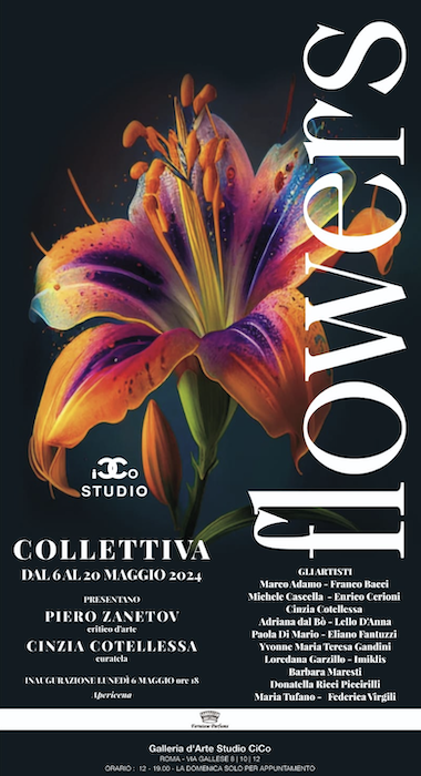 La Galleria Studio CiCo è lieta di annunciare l’inaugurazione della mostra collettiva "FLOWERS", che si terrà il 6 maggio alle ore 18, a Roma presso la galleria in via Gallese 10.