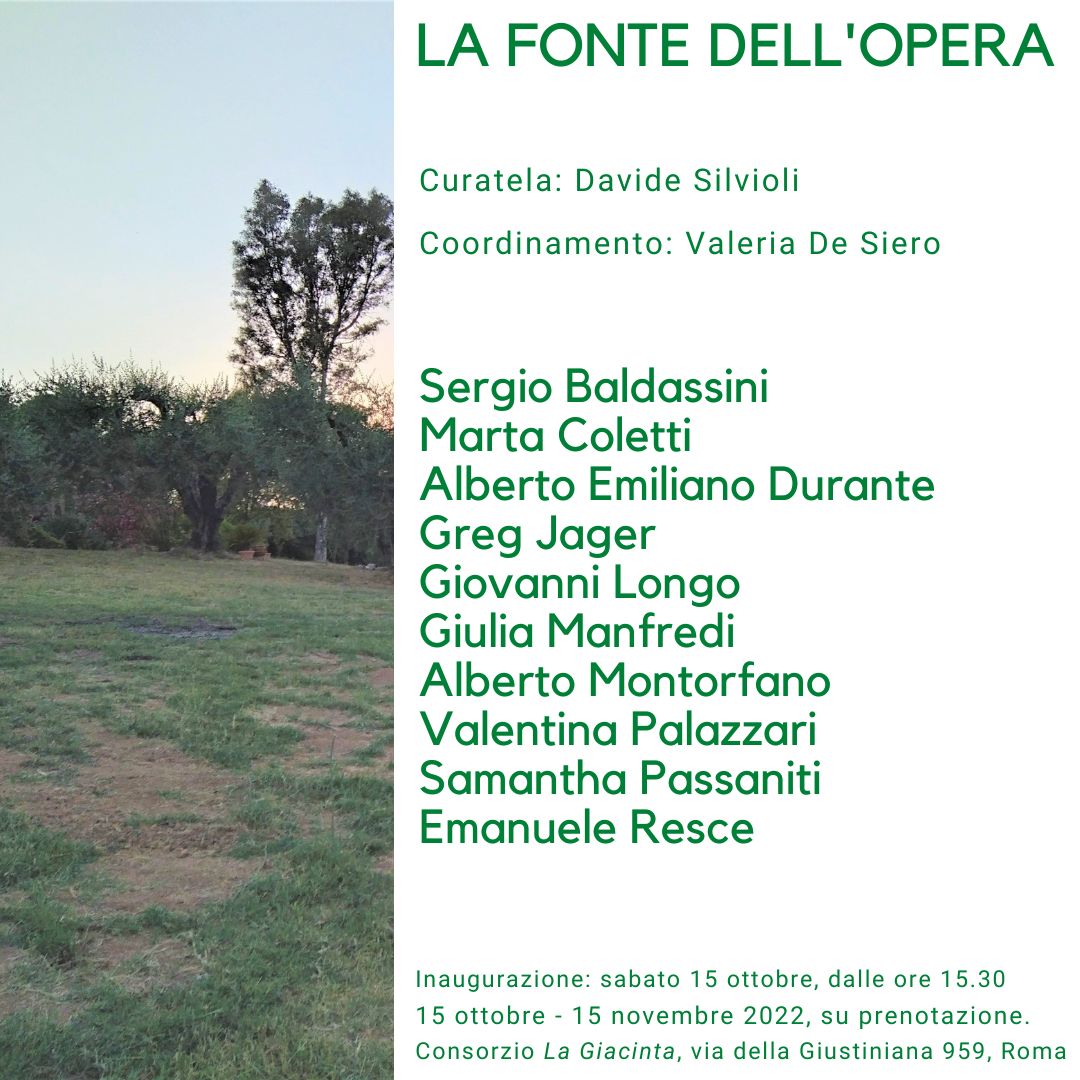 Sabato 15 ottobre, dalle ore 15.30, apre al pubblico la mostra collettiva “La fonte dell’opera”, a cura di Davide Silvioli con la collaborazione di Valeria De Siero. L’evento è compreso fra le iniziative previste dall’edizione 2022 di Rome Art Week e vede il supporto della galleria ADD-art, di Spoleto.