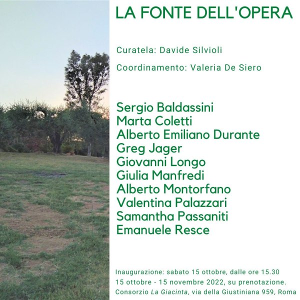 La titolazione del progetto riprende l’accezione della categoria della natura, concepita in relazione allo statuto dell’opera d’arte, che traspare da “Lo spazio dell’opera” (Morcelliana, 2018), trattato di estetica di Stefano Esengrini, dove la dimensione naturale viene indicata come “fonte”. A partire da una riflessione critica su questa nozione, artiste e artisti differenti per formazione, metodologia e tecnica, tuttavia parificati dalla pratica unanime di un approccio che tende spontaneamente a istituire gradi di permeabilità fra le possibilità espressive dell’opera d’arte e le salienze del circostante, del sito ambientale e dello spazio aperto sono stati invitati a relazionare liberamente l’indole delle rispettive ricerche artistiche con un contesto naturale comune; il giardino esterno di una delle proprietà del Consorzio “La Giacinta”.
