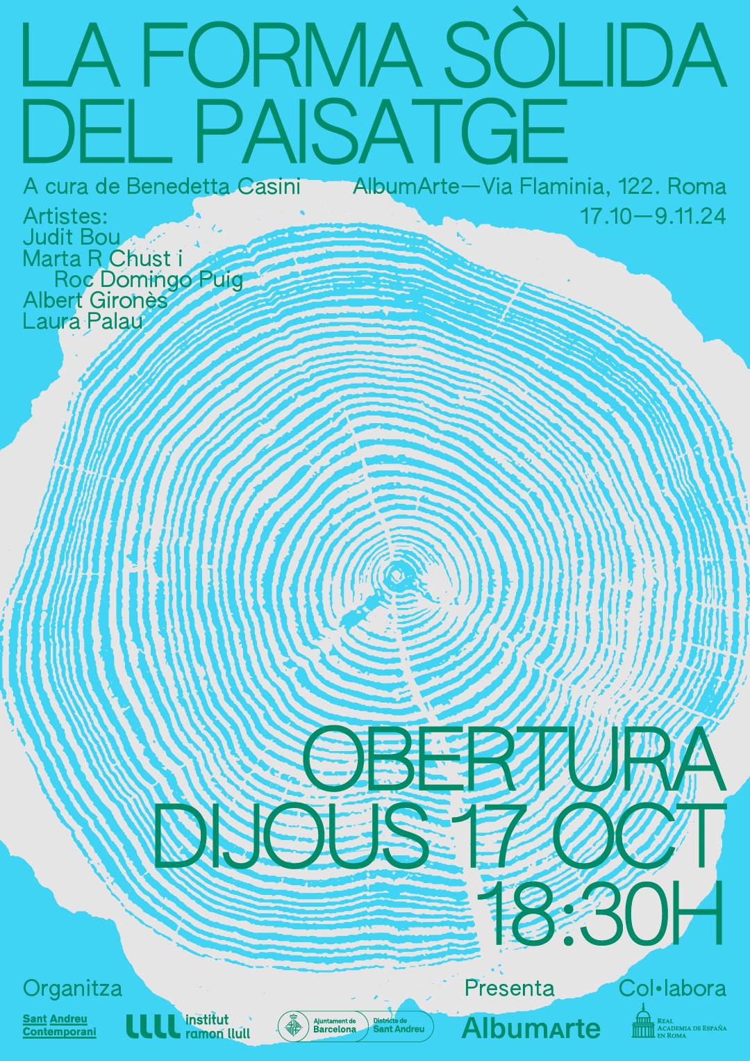 Giovedì 17 ottobre e fino al 9 novembre 2024 AlbumArte centro per la ricerca artistica indipendente di Roma e SAC-Sant Andreu Contemporani programma pubblico dedicato all'arte emergente nel Distretto di Sant Andreu (Barcellona), presentano La forma solida del paesaggio, mostra collettiva a cura di Benedetta Casini, curatrice vincitrice dell’International Curatorial Residency Program, programma di residenze del Sant Andreu Contemporaneo diretto a curatori/rici internazionali, co-organizzato con l’Instituto Ramón Llull, in collaborazione con Fabra i Coats – Fabrica di Creazione di Barcellona.
