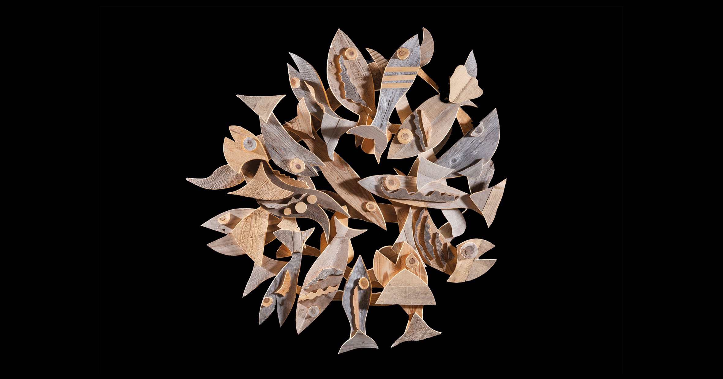 Ma l’acqua è anche un ecosistema meraviglioso, un proliferare di creature, e con Montalti, veniamo catturati dai suoi pesci guizzanti realizzati con legni naturali. Nicola Saldutti scrive di lui sul sul Corriere della Sera: <<All’inizio Fiorenzo Montalti di Cesena, Fotografo, artista del legno e non solo si è occupato della terra…poi è arrivato al mare: i suoi pesci fatti di pezzi di legno sono un modo per raccontare storie e riflessioni, facezie… I pesci che parlano, come i pesci che ascoltano la predica di Sant’Antonio da Padova. Legno che diventa mare>>.