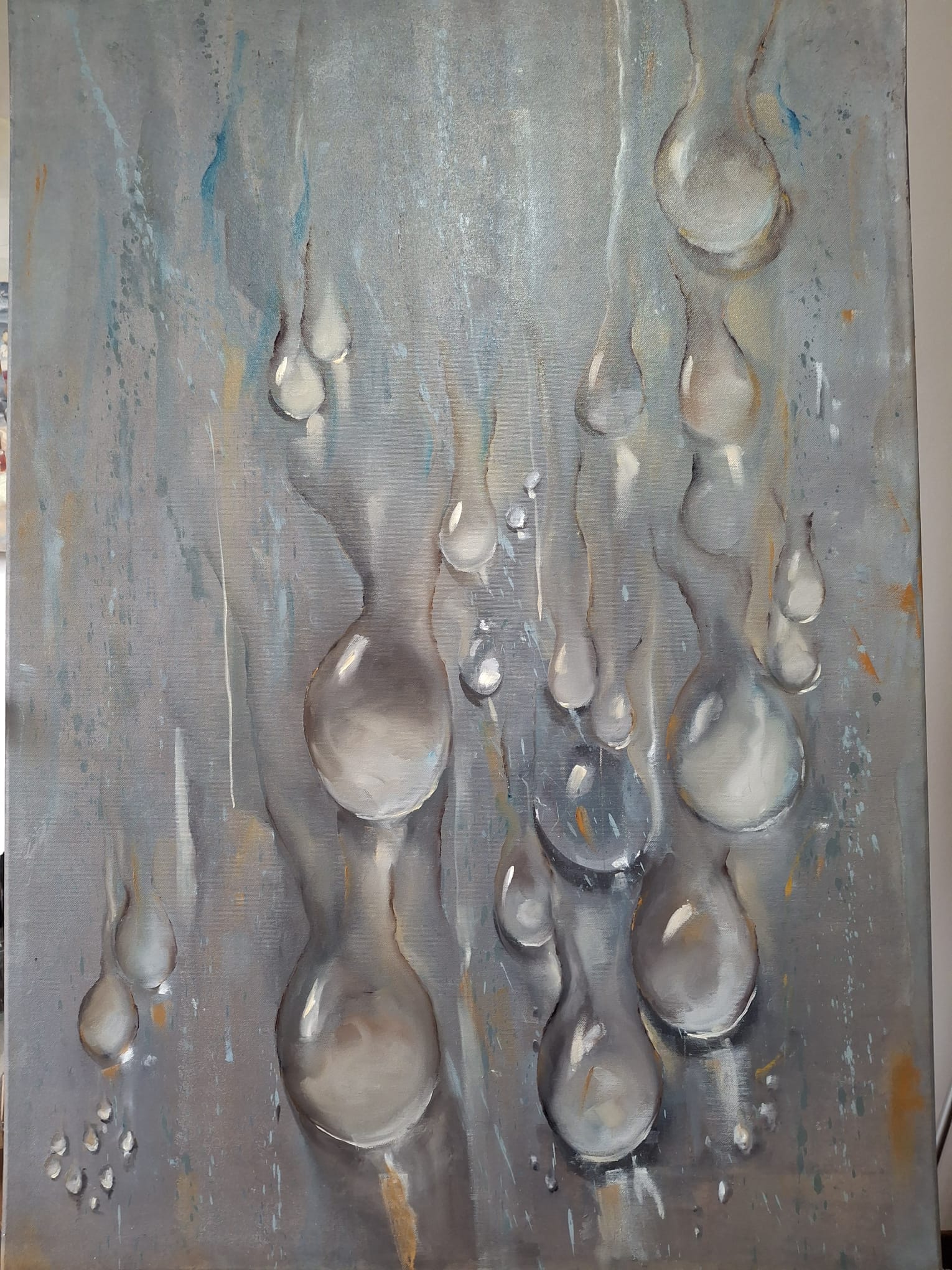 Così anche nelle delicate tele della Serafini, dove essa è rappresentata come cubetto di ghiaccio, come pozzanghera, come goccia, con sapienti giochi di trasparenze che alludono alla sua ineffabilità. Magistrali le gocce d’acqua, dove la Serafini, con virtuosismo e verosimiglianza, riesce a scattare istantanee di sublime bellezza.