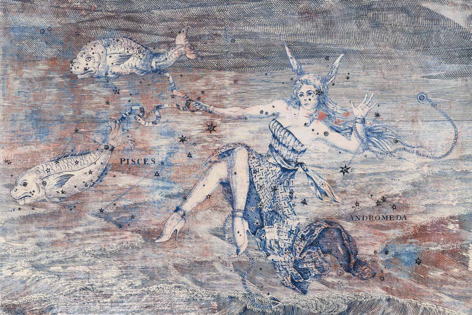 Undici dipinti e tredici disegni conducono lo spettatore in un viaggio fantastico dove, navigando di costellazione in costellazione seguendo il dipanarsi di un filo che segna traiettorie tra le stelle, si esplora una immaginaria mappa astrale, animata nel suo percorso da figure antropomorfe a rappresentare antichi miti a cui l'artista – nella sua personalissima reinterpretazione – regala nuova vita, nuove occasioni e parrebbe, in taluni casi, un inusuale lieto epilogo.