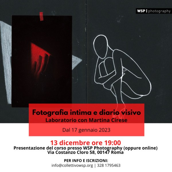 Fotografia intima e diario visivo a cura di Martina Cirese è un laboratorio sperimentale: un ciclo di incontri per esplorare linguaggi eterogenei e aprire l’esperienza fotografica a una dimensione introspettiva e artistica.