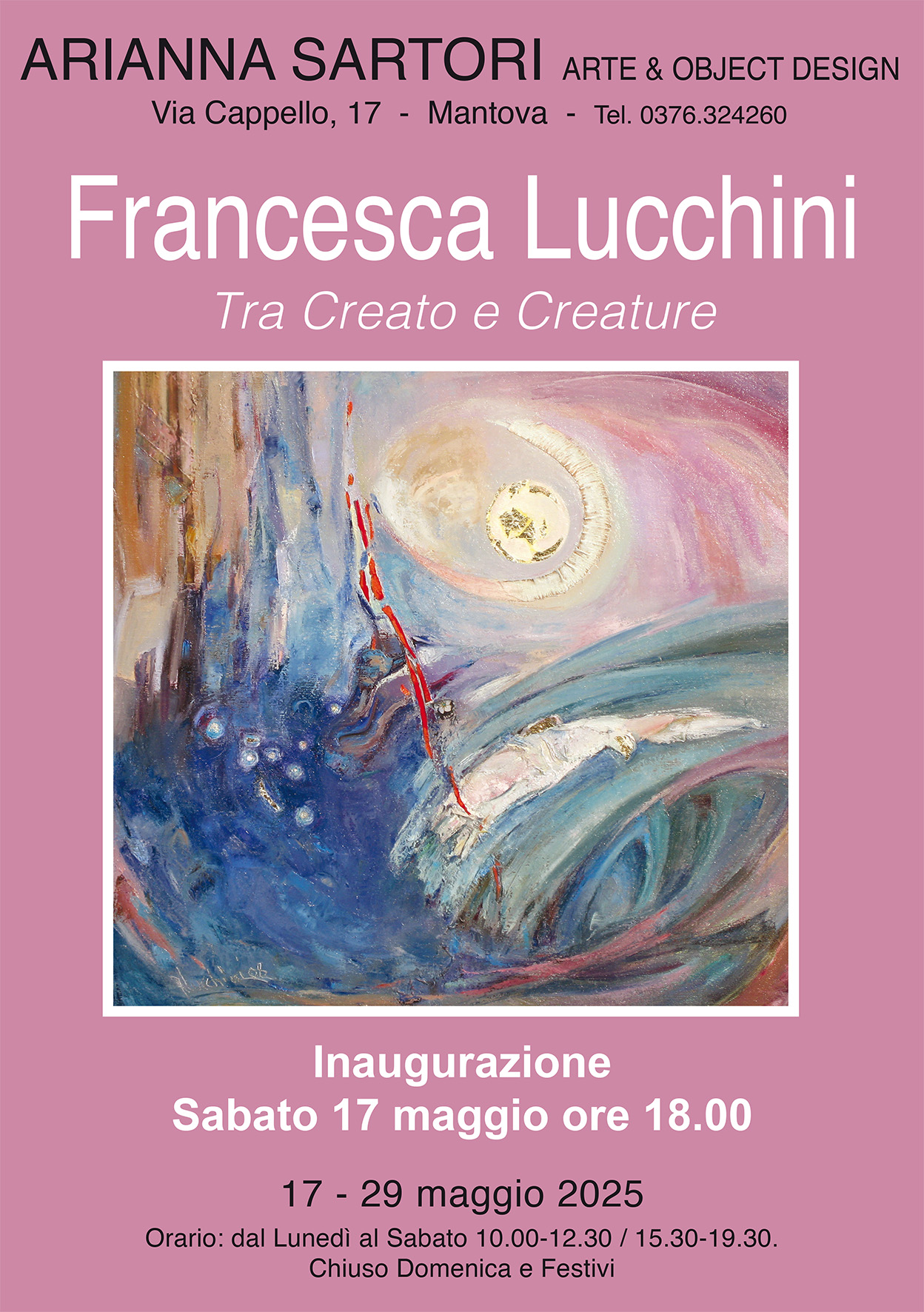 La Galleria Arianna Sartori di Mantova, nella sala di via Cappello 17, presenta la mostra personale dell’Artista mantovana Francesca Lucchini intitolata “Tra Creato e Creature”.