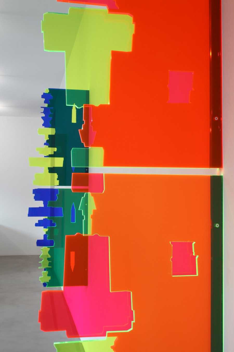 Nella prima sala del piano superiore sono esposti, nella versione verticale, alcuni skyline di città in plexiglas o sezioni di esse rese come superficie e contorno - visioni di un “architetto dell’immateriale” e insieme testimonianza del vissuto dall’artista.