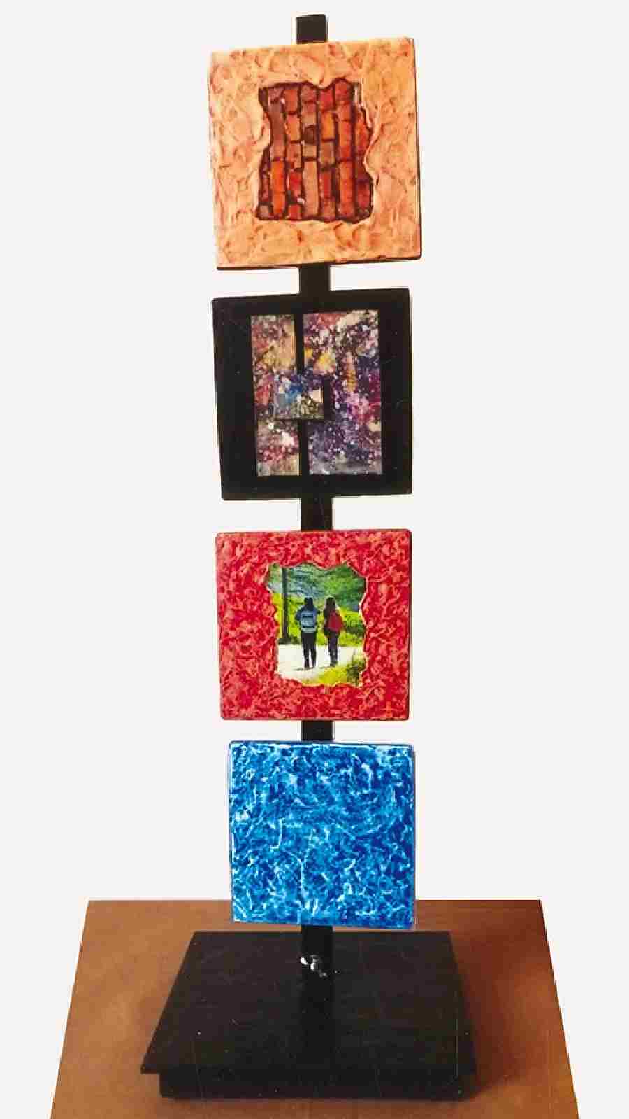 Tommasi asserisce che le strutture esposte in questa rassegna “simbolicamente” alludono al tema sopra citato, inoltre precisa, che dette strutture sono caratterizzate da varie espressioni, tali da assumere sembianze ludiche.