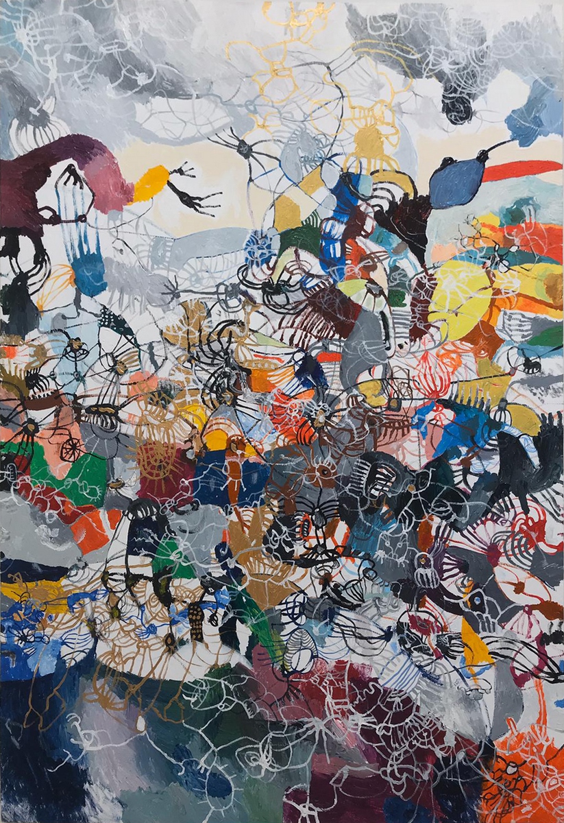A differenza di quanto si possa supporre dalla sua lunga e importante carriera nella musica, la pittura è stata la prima forma di espressione artistica per Tricarico. Un’urgenza di pittura che si manifesta anche nel suo linguaggio e nel suo approccio, caratterizzato da continue sovrapposizioni di strati di segni e colore.