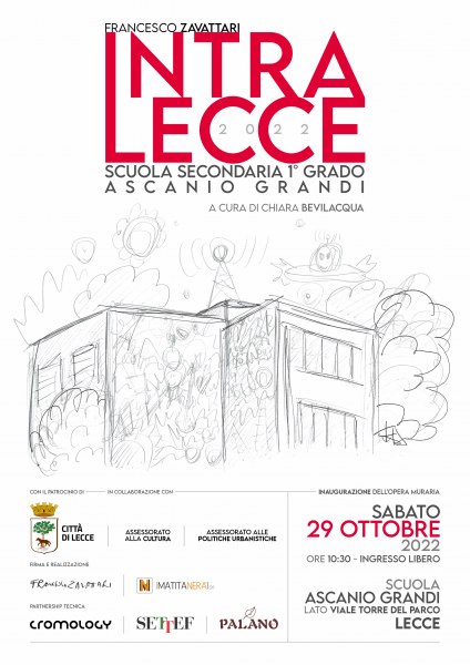 Attraverso il concept "Intralecce" da lui stesso ideato, l'artista risponde all'esigenza dell'Amministrazione Comunale, in particolare dell'Assessorato alla Cultura e dell'Assessorato alle Politiche Urbanistiche, di riqualificare un'area della città, sia dal punto di vista artistico che sociale, mediante i tratti distintivi della sua opera: nello specifico, verranno realizzati due murales esterni presso la Scuola Secondaria di Primo Grado "Ascanio Grandi" con una decorazione che andrà a ispirarsi alla vocazione principale dell'istituto, ovvero quella musicale.