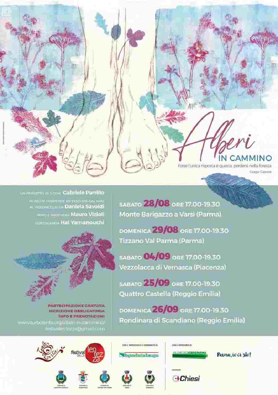 Promosso dall’Associazione Turbolenta e dal Festival della Lentezza con il patrocinio e il contributo della Regione Emilia Romagna e dei comuni di Quattro Castella (RE), Scandiano (RE), Varsi (PR), Vernasca (PC) e Tizzano Val Parma (PR), il progetto si propone di recuperare non solo simbolicamente ma anche fisicamente il contatto con una natura che mai come oggi, dopo l’assenza forzata imposta dal lockdown, ha fatto sentire il proprio carattere di dimensione essenziale.