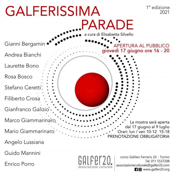 Galferissima parade, curata da Elisabetta Silvello e dall’Associazione Culturale Galfer20, s’inaugura giovedì 17 giugno, con un’apertura straordinaria dello spazio, dalle ore 16 alle ore 20.