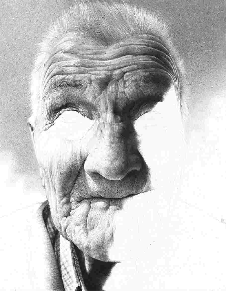 Non c'è tatuaggio più marcato e preciso che quello delle rughe su di un corpo. Evidente si propone la capacità di Antonio Finelli di tracciare con una matita il vissuto di una persona.
