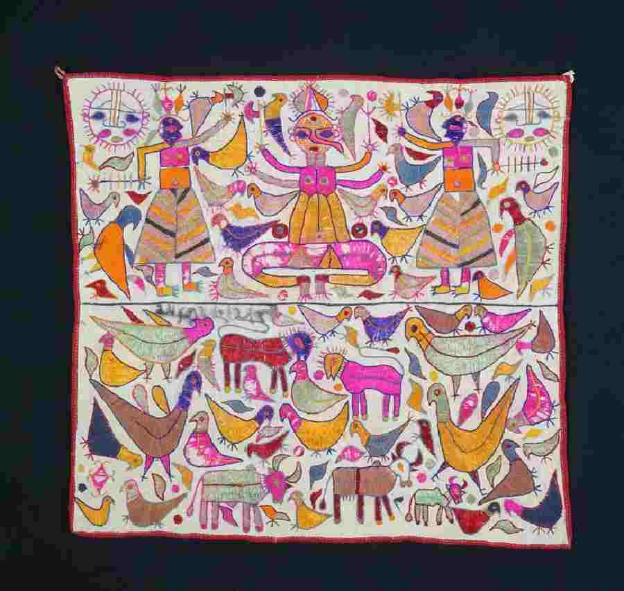 In molte abitazioni del Gujarat, una regione dell'India nord occidentale, è appesa sopra la porta di ingresso, una stoffa ricamata con l'immagine di Ganesh, la divinità più venerata e benefica del pantheon indù perché aiuta a superare ogni ostacolo. Sono ricami che esprimono il coloratissimo gusto locale attraverso uno stile personale che dal realistico diventa spesso stilizzato e addirittura astratto. Immagini di devozione che sono anche talismani che proteggono la casa e la famiglia.
