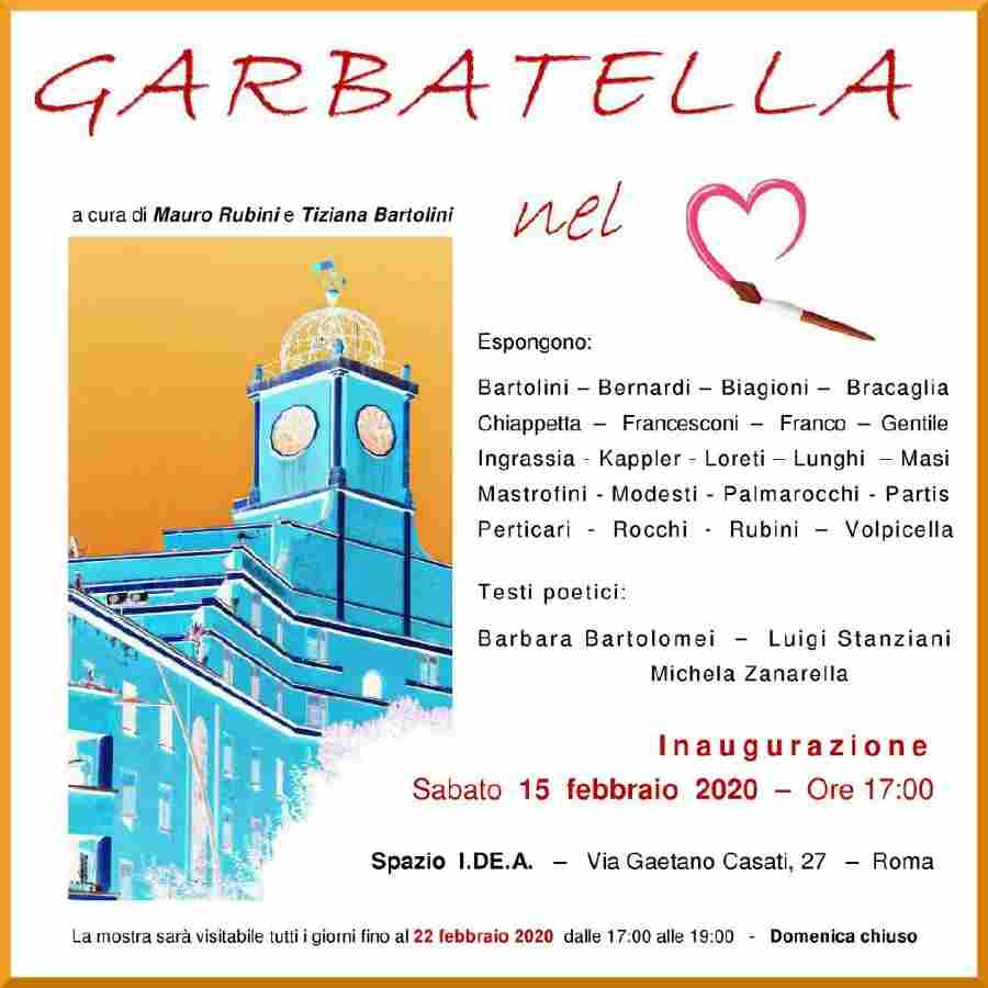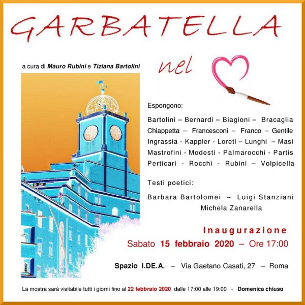 Sabato 15 febbraio 2020 alle ore 17:00, in via Gaetano Casati 27 si inaugura un affascinante evento artistico di pittura, scultura, fotografia e poesia che celebra i 100 anni della storica borgata romana Garbatella dal titolo “GARBATELLA NEL CUORE”.