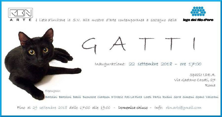 Roma – Sabato 22 settembre 2018 alle ore 17:00 ci sarà l’inaugurazione della mostra d’arte contemporanea GATTI a sostegno dell’Associazione Onlus Lega filo d’oro presso lo showroom Spazio I.DE.A. in via Gaetano Casati, 27. L’evento, organizzato da RBN arte, a cura di Mauro Rubini e recensito da Alessandra Rinaldi, sarà visitabile fino al 29 settembre, dalle 17:00 alle 19:00, festivi esclusi.