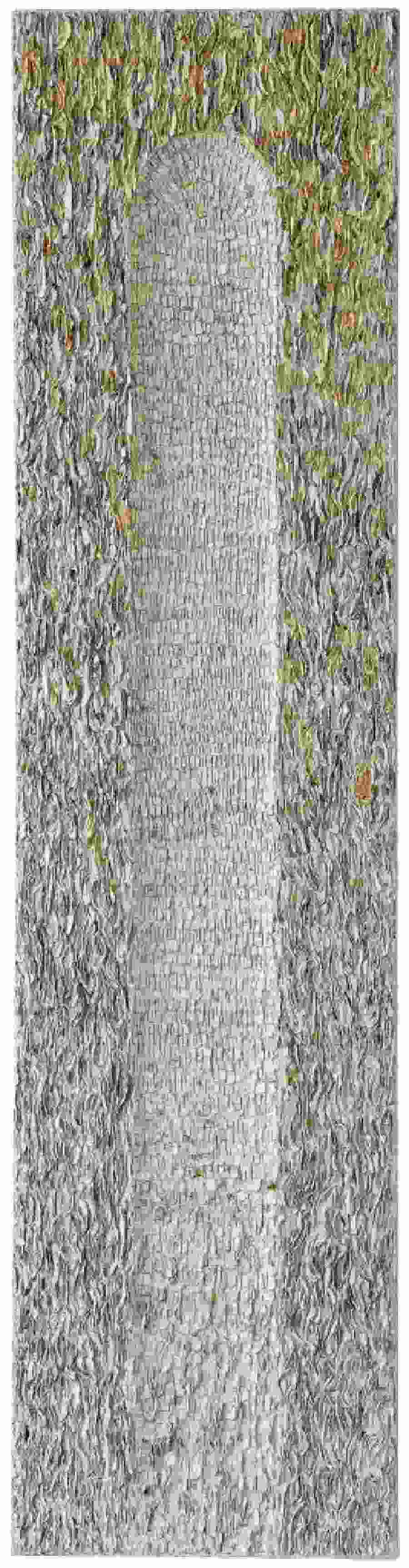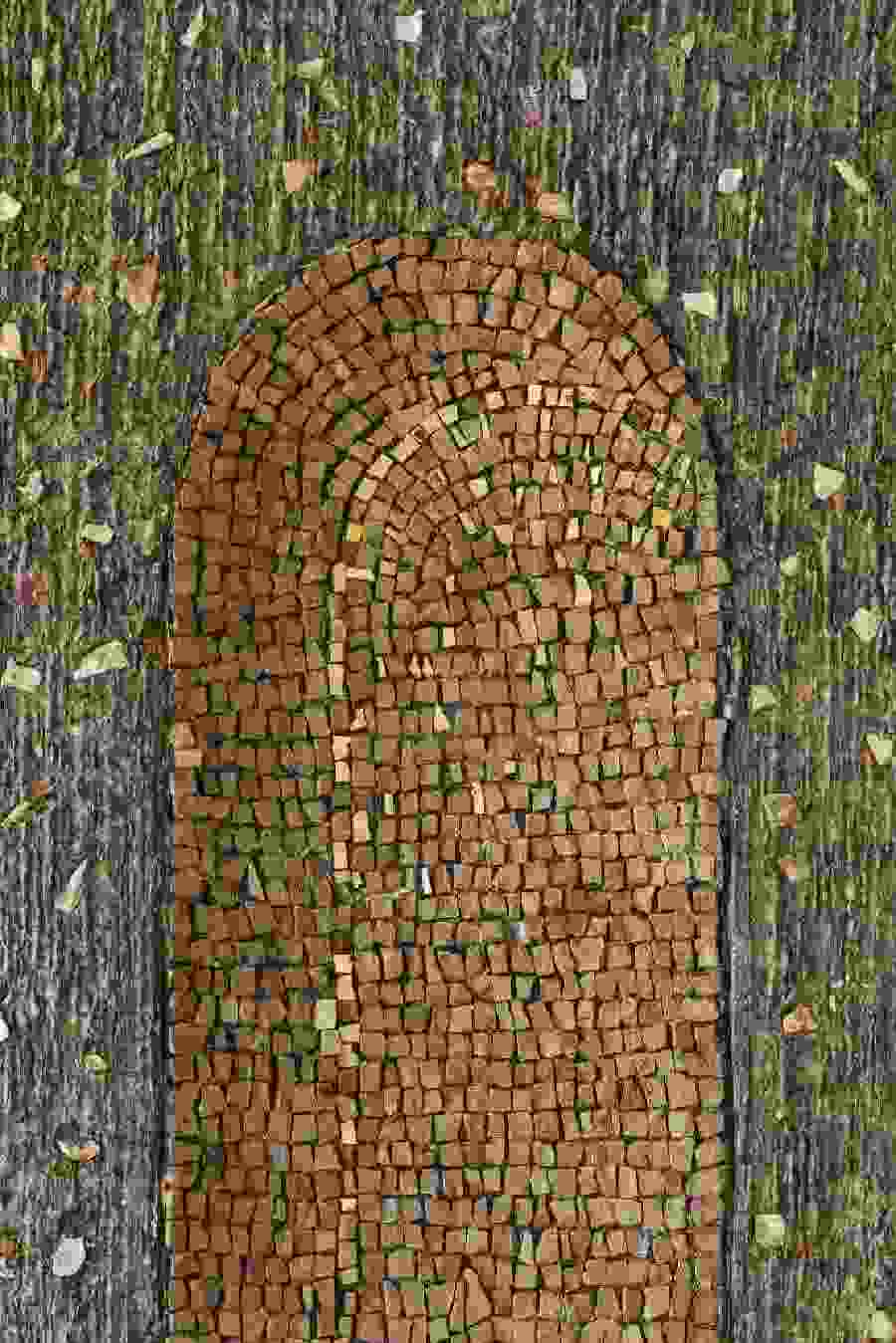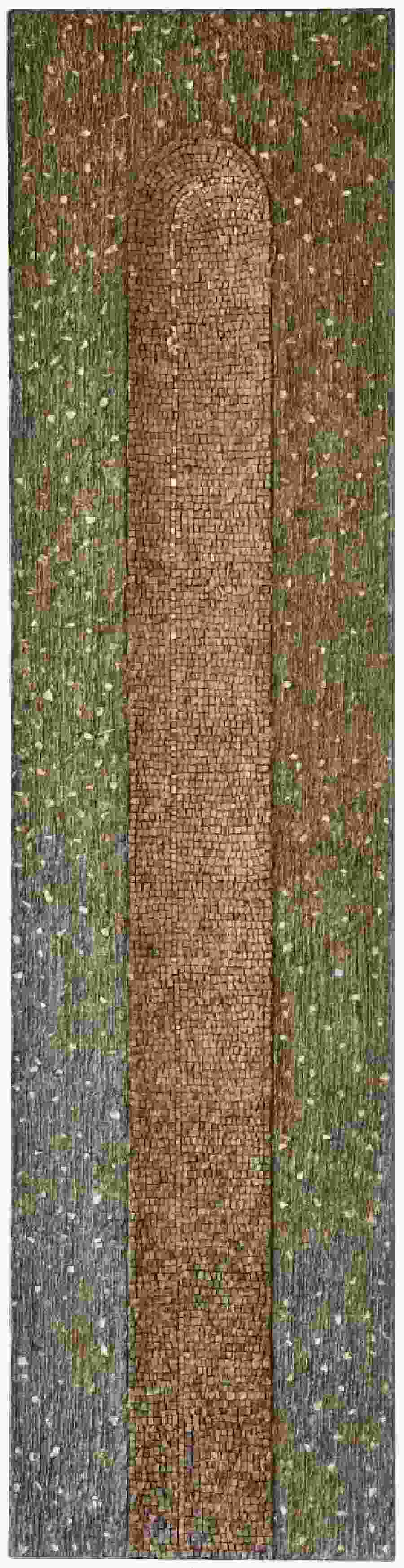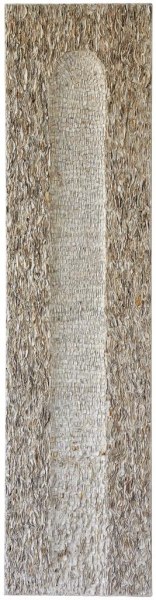 La scultura/mosaico “Il monte e la nuvola”, dove, le forme e il chiarore dei materiali quasi incolore, raccontano la consistenza del monte. La luce e la leggerezza della nuvola, invece, emergono attraverso un gioco di vuoti e pieni, che si esprime, man mano che si sale verso la parte superiore, attraverso il susseguirsi orizzontale dei piccoli multipli di pietrine.