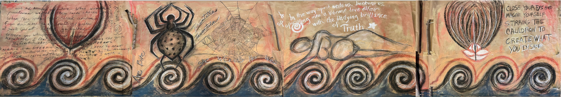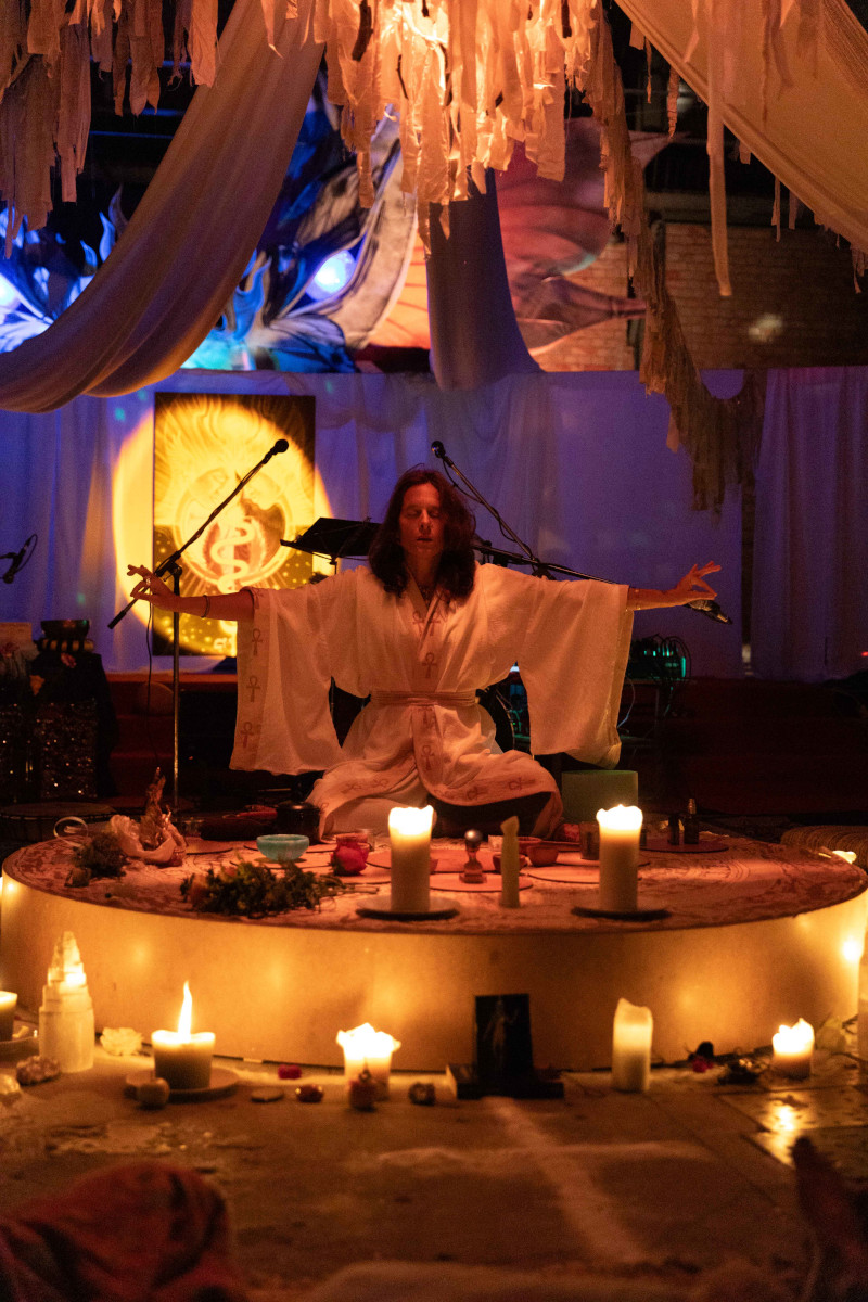 Corpo-abito-paesaggio nella ricerca dell’artista americana Justine Giordano, che trasforma il suo abito da sposa in indumento rituale tra memoria e dissoluzione. L’abito abbandona la sua dimensione simbolica e diventa esoscheletro o protesi nelle opere dell’artista cinese Angel J. Qin. Il corpo è frammento, reliquia, scena con le opere dell’artista americana Georganne Aldrich Heller. Nel solco delle cosmogonie della Grande Madre, l’arte torna ad essere rito, esperienza trasformativa, atto di nascita simbolica nel grande libro Quando le sacerdotesse camminavano dell’artista americana Glen Rogers e ricco di simboli archetipici come il grembo, la spirale, il triangolo, il ragno tessitore di destini ma anche nell’installazione multimediale “Touch the Sky: La Grande Madre ci sogna nell’esistenza dell’artista americana Sandra Cohn, nel Dream Temple, progetto di teatro rituale, sciamanico e partecipativo dell’artista e regista tedesca Annette Assmy. La Madre Terra e la sessualità visti come archetipi universali nelle opere dell’artista ucraino-americana Yelena Kimelblat e l’utero primordiale nell’opera dell’artista cinese Victoria Yuanli Yuan.