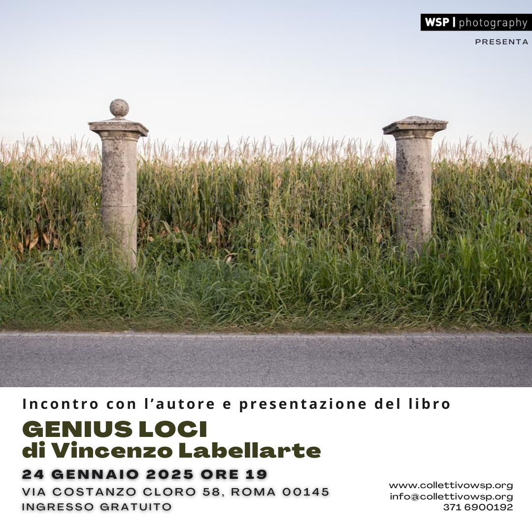 Venerdì 24 gennaio 2025 dalle ore 19, ospiteremo presso la sede del WSP Photography in Via Costanzo Cloro 58 Roma, il fotografo Vincenzo Labellarte che ci presenterà il suo lavoro e il libro “Genius Loci”. La partecipazione è gratuita e aperta a tutti.