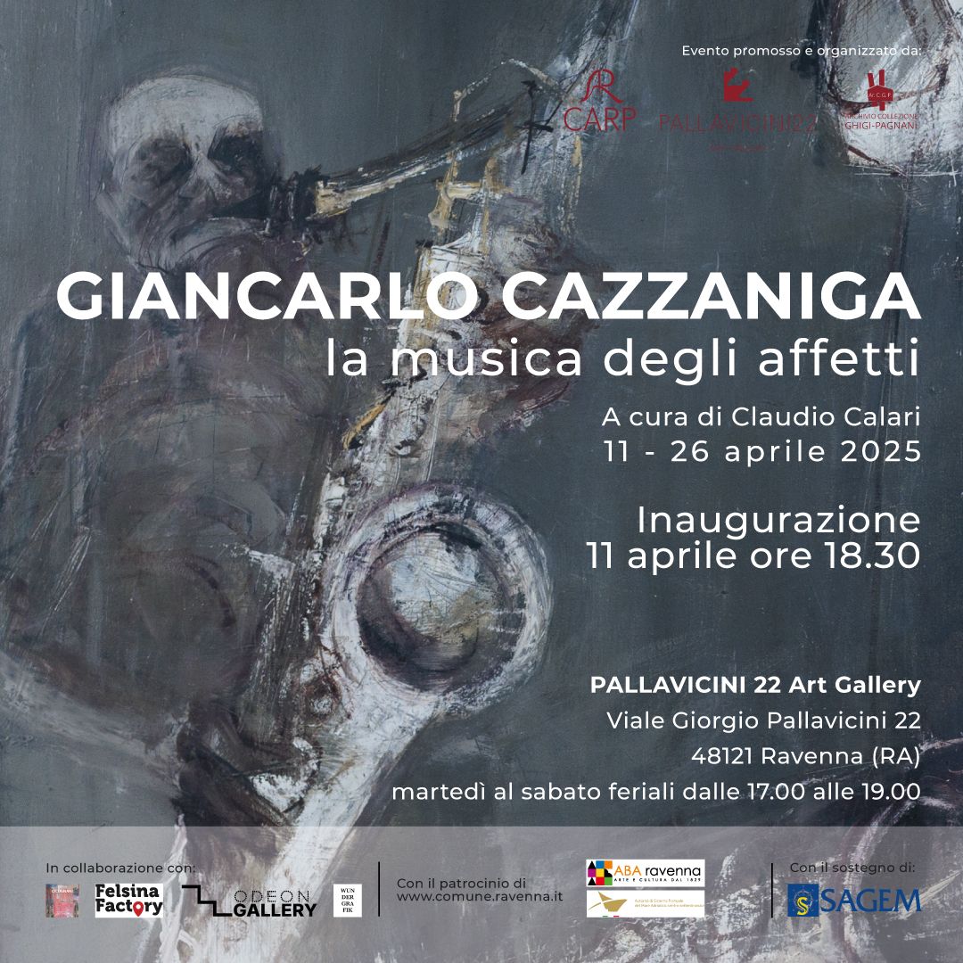 Venerdì 11 aprile 2025 alle ore 18:30 presso lo spazio espositivo Pallavicini22 Art Gallery in Viale Giorgio Pallavicini 22 a Ravenna, si inaugura la mostra “Giancarlo Cazzaniga, la musica degli affetti” che intende celebrare l'artista lombardo Giancarlo Cazzaniga. L'esposizione, a cura di Claudio Calari con testo a catalogo di quest’ultimo, rimarrà allestita fino a sabato 26 aprile e sarà aperta al pubblico dal martedì al sabato feriali dalle 17 alle 19. Ingresso libero.