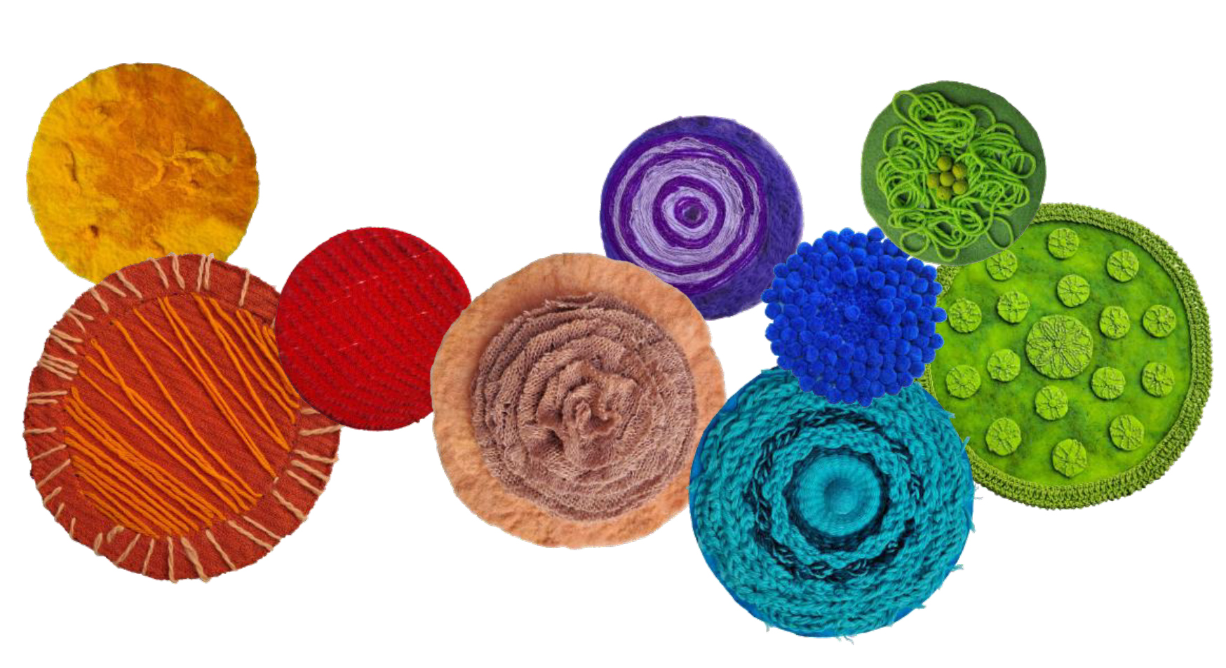 I “Girotondi” creati dai partecipanti sono cerchi di lana modulati in tre dimensioni, diversi tra loro per colore e lavorazione. Dall’uncinetto alla maglia, dalla tessitura alla cardatura, dal feltro al ricamo, dai pon-pon al collage, fino alle tecniche meno comuni o alle combinazioni più personali delle lavorazioni, i manufatti realizzati dai partecipanti sottolineano la libera rielaborazione del materiale, mantenendo l’aderenza alla modalità proposta per l’installazione collettiva.