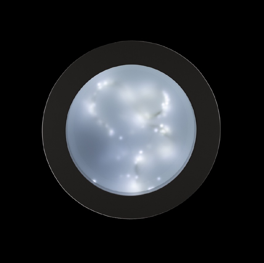 «Nella penombra del Bastione aragonese di Santa Scolastica – scrive Antonella Marino nel catalogo – nove strutture di essenziale geometria si stagliano con evocativo rigore in total white. Il candore assoluto delle teche in forma di spaziosi triangoli, cerchi, quadrati, sorretti in continuità da alti basamenti, contrasta in parte con l’ambiguità visiva delle immagini intrappolate al loro interno: apparizioni lattiginose di luce ora fredda ora più calda dai riverberi grigi e azzurri, da cui affiorano assonanze embrionali, traiettorie sfumate, sagome astrali, costellazioni fisse o pulsanti. Difficile descrivere ciò che gli occhi vedono e traducono in sorpresa mentale ed emotiva. In questa installazione Giulio De Mitri sembra voler condensare il processo originario della nostra esistenza, genesi cosmica, nascita, trasformazione, morte come continua rigenerazione. La silenziosa mistica sottende il mistero dell'eredità ancestrale: come è iniziato tutto? Che cosa è il creato? Qual è la nostra casa? Da dove è venuto tutto questo, in che modo ne facciamo parte?”, annota l'autore.»