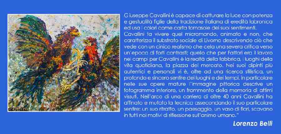 “Cavallini si è formato respirando l’area del mare di Livorno e, partendo dall’eredità stilistica dei macchiaioli, ha affermato un suo personale linguaggio d’espressione oggettivo carico di colore e pathos.