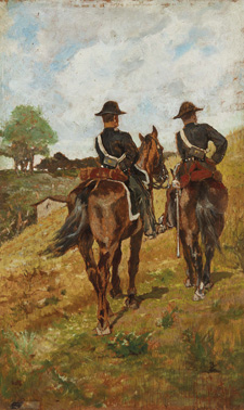 In asta anche due rare tele di Giovanni Grubacs raffiguranti vedute di Venezia, segnaliamo un evento caro e sentito dai veneziani, Festeggiamenti notturni per l’annessione all’Italia, per il quale sono richiesti 35.000/50.000 euro, mentre è di 25.000/35.000 euro la richiesta per un dipinto su tavoletta di dimensioni ridotte di Giovanni Fattori che ritrae una coppia di Carabinieri a cavallo, tutt’altra atmosfera è quella dell’amore materno che si respira nell’interno domestico della grande tela Il Bagnetto di Gaetano Chierici valutata 12.000/18.000 euro.