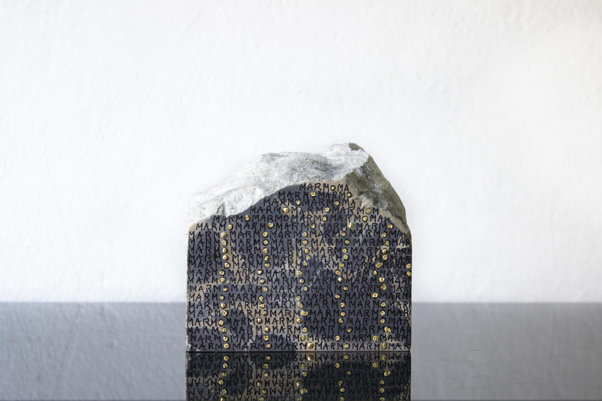 Il lavoro di Greta Schödl incorpora lettere e simboli, ripetuti ritmicamente fino a renderli astratti. Forme geometriche e segni decisi si intrecciano con le parole, illuminate con foglia d’oro e fuse su diverse superfici: pagine di libri botanici, mappe, carte, foglie, pezzi di marmo, lenzuoli, che portano memoria di esistenza passata. Attraverso la combinazione di rappresentazione linguistica e visiva, Schödl cancella il significato originale delle parole e degli oggetti che usa impregnandoli di un nuovo significato. Il suo lavoro sfida i costrutti sociali del linguaggio e suggerisce forme alternative di espressione e interpretazione.