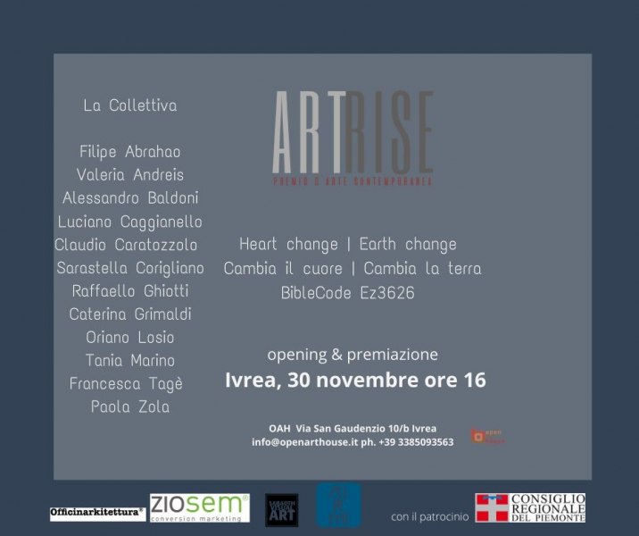 La prima edizione del premio ArtRise di Open Art House, sta arrivando alla data cruciale, quella della collettiva dalla quale uscirà il vincitore. Il premio vuole essere uno strumento di art scouting per coloro che desiderano proporsi seriamente nel campo dell'arte contemporanea ed hanno il coraggio di cimentarsi e sviluppare tematiche profonde in controtendenza, tracciando nuove rotte.