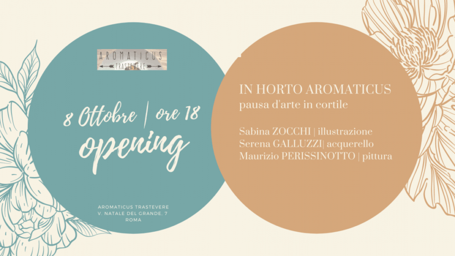 Nel cuore di Trastevere, un’oasi nascosta, il cortile di Aromaticus di Luca e Francesca, ospiterà tre inedite esposizioni d’arte che si concluderanno con la Roma Art Week il 27 | 31 ottobre. Tre esposizioni di artisti i cui lavori dialogheranno con gli spazi di ispirazione vagamente esotica e le piante aromatiche custodite nel green bistrot di via Natale del Grande.